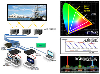 方案介绍:NEC激光4K投影机采用最新的RGB三色激光光源,大大提高了显示画面的亮度和细腻度。激光光源超长20000小时使用寿命和极高的稳定性,使整个系统免维护且运营成本超低。